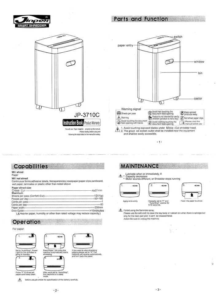 מגרסת נייר משרדית JP-3710C – גריסה יעילה ושקטה