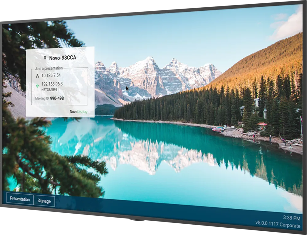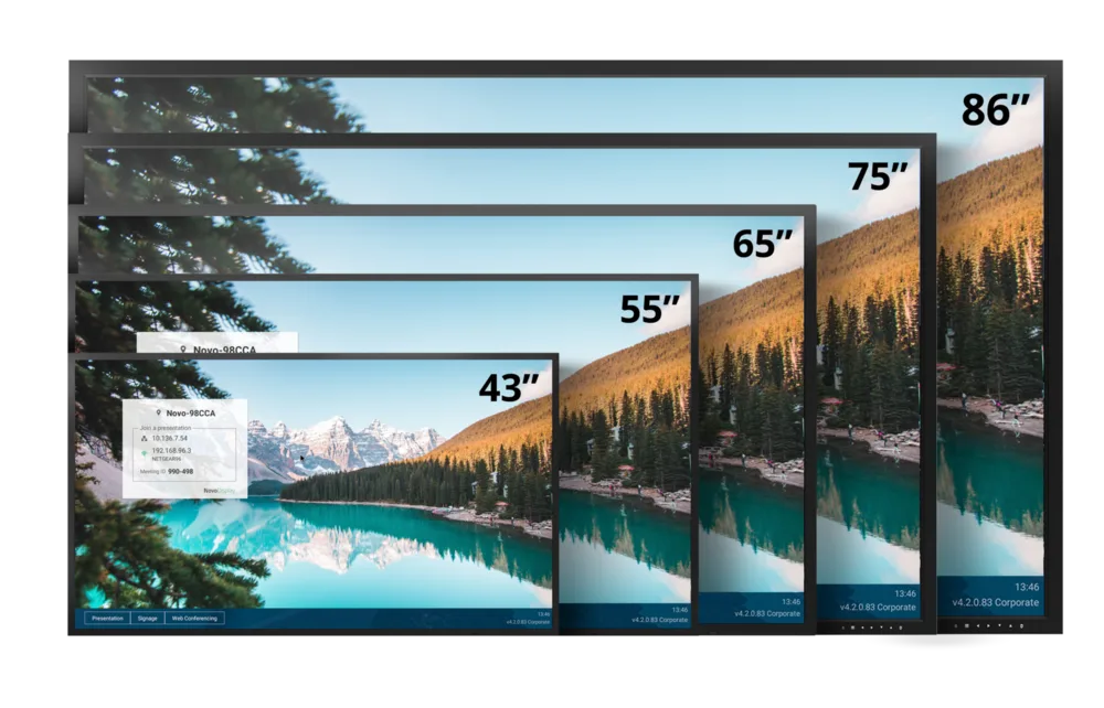 מסך NovoDisplay DK מציע רזולוציית Ultra-HD 4K (3,840 x 2,160). בעזרת תוכנת השילוט הדיגיטלי NovoDS הכלולה, תוכלו ליצור, לפרסם ולנהל תוכן החל מהודעות פרסומיות ועד להודעות חברה. בעזרת פתרון NovoConnect Wireless Collaboration הנוסף, ניתן בקלות להעביר את NovoDsiplay למצב מצגת. מסך NovoDisplay DK מתאים ליישומים מסחריים כגון אירוח, קמעונאות, חינוך ועסקים.